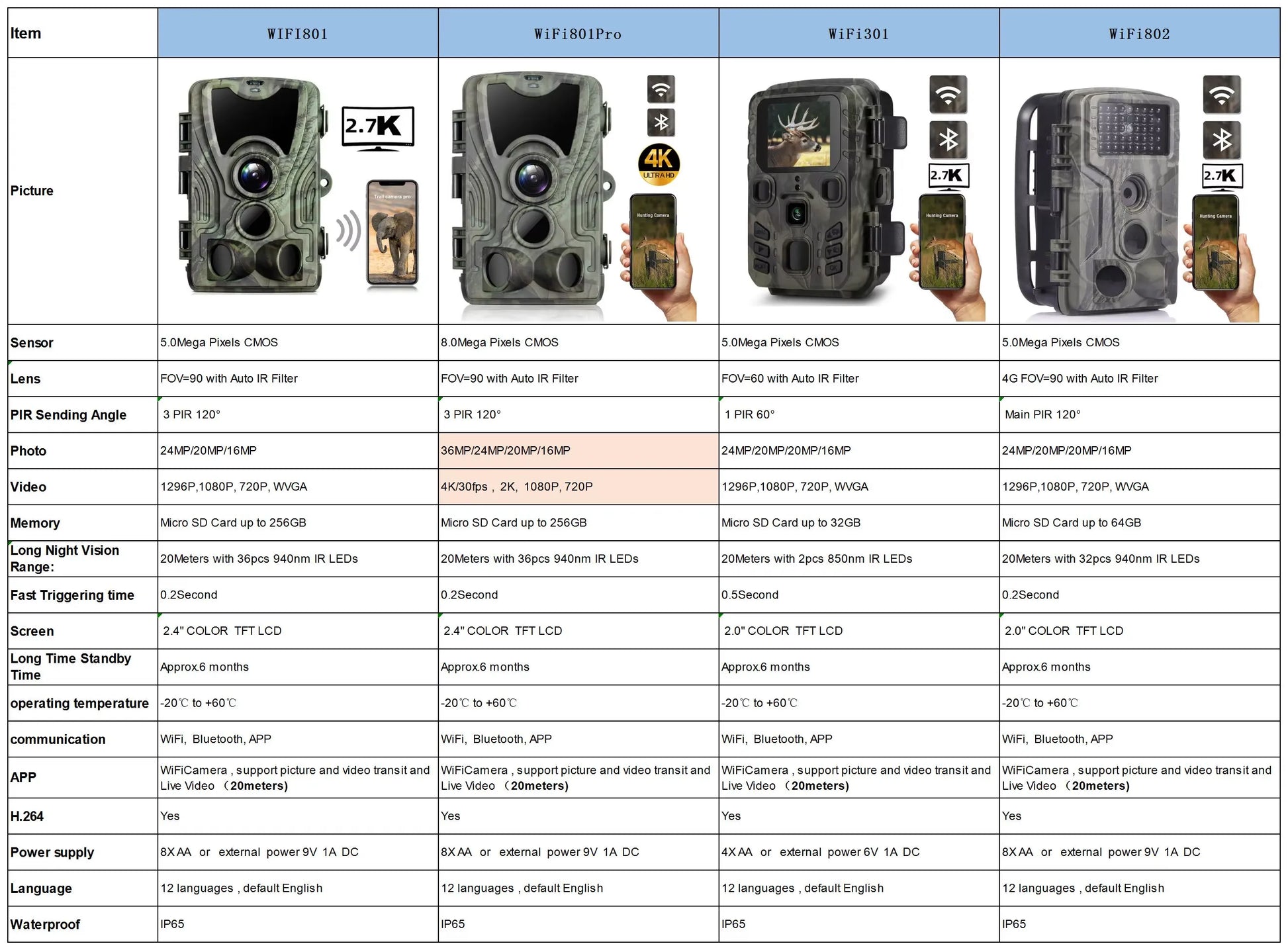 TerraCam 4K Wi-Fi Pro — 4K · Wi-Fi · IR invisible