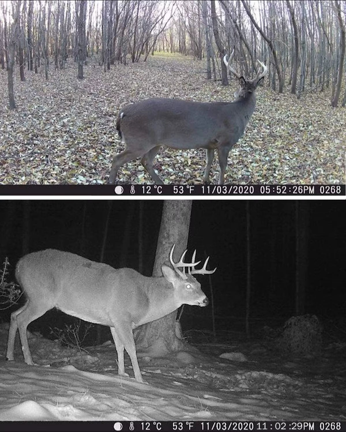 Les détails du pelage et des bois sont bien visibles. Pratique pour noter les habitudes de passage sur la saison.